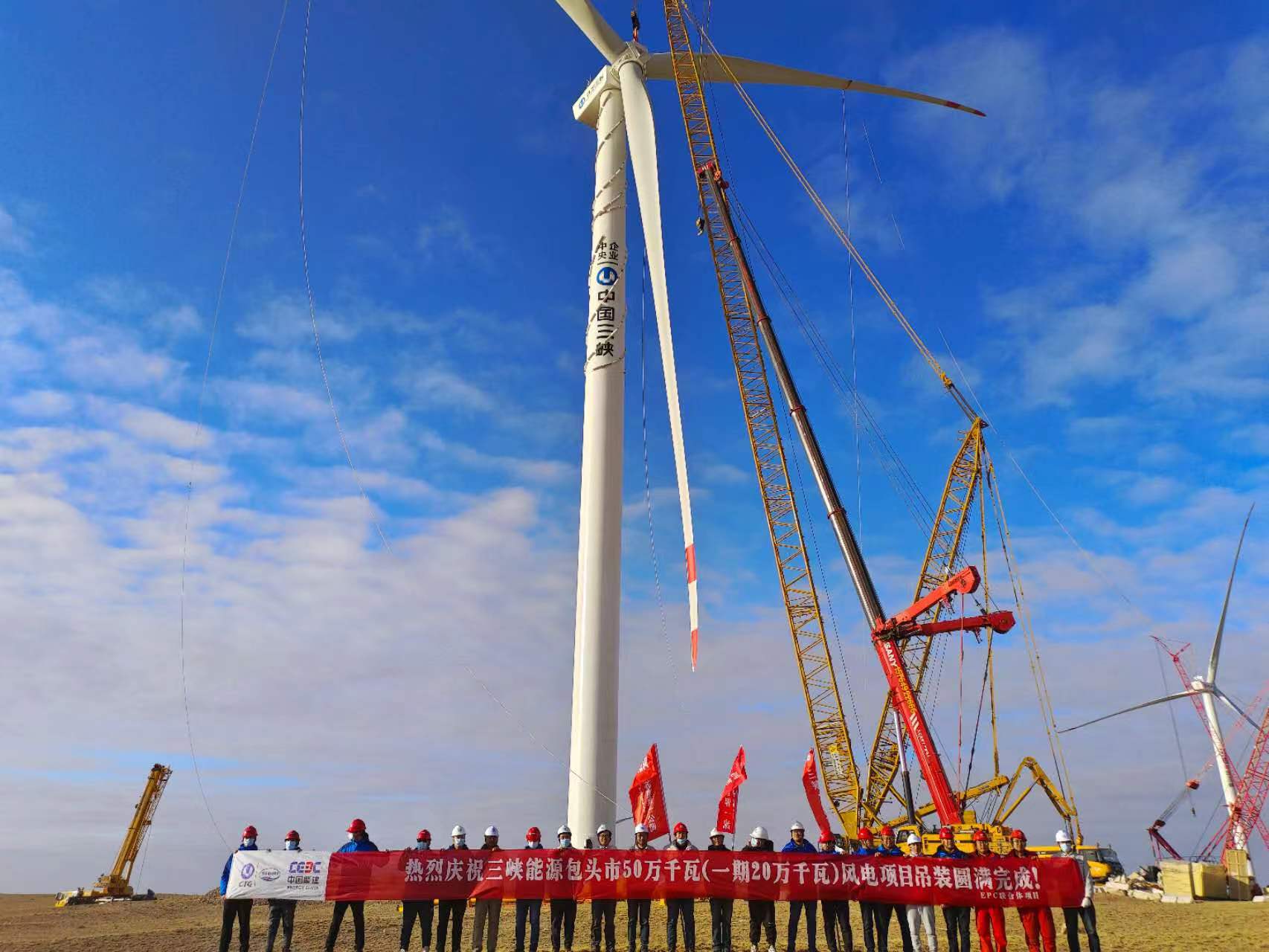 三峽能源內蒙古包頭市可再生能源綜合應用示范區1號50萬千瓦(一期20萬千瓦)共計31臺風機全部吊裝完成,二期46臺風機澆筑已完成37臺。項目部副經理,楊峰感慨,2021年風電、光伏等新能源發電量只占全年總發電量的11.8%,還有很大的提升空間,如今新能源產業順應時代需求,正是投資風口,前途一片光明。作為新能源行業的建設者,大有可為,作為一名共產黨員,將竭盡所能,從陸地到海洋,從平原到高山,從湖底到沙漠,從南疆到北國,為我國新能源產業發展貢獻一份力量。